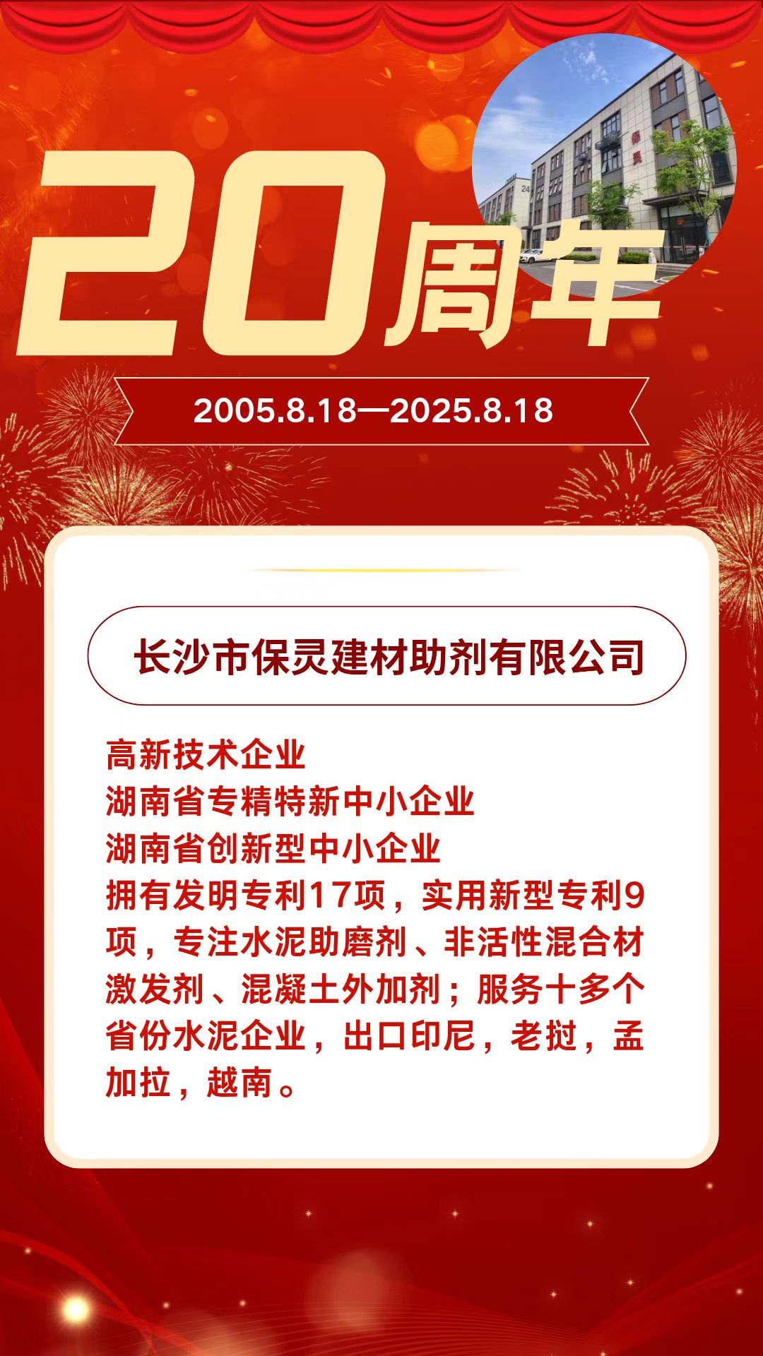廿載匠心鑄輝煌 創(chuàng )新領(lǐng)航助砼業(yè)——長(cháng)沙市保靈建材助劑有限公司20周年誌慶